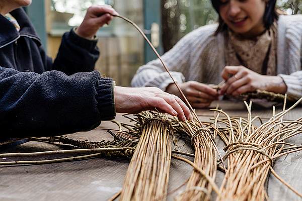 Julie enjoys, and is inspired by, the natural environment. Recreating and celebrating the shapes, forms, mass, flowing lines and textures of flora and fauna, she first draws and designs in pencil and charcoal before using flexible willow to form her sculptures and shapes. Julie preserves and champions heritage English basket weaves in her works.