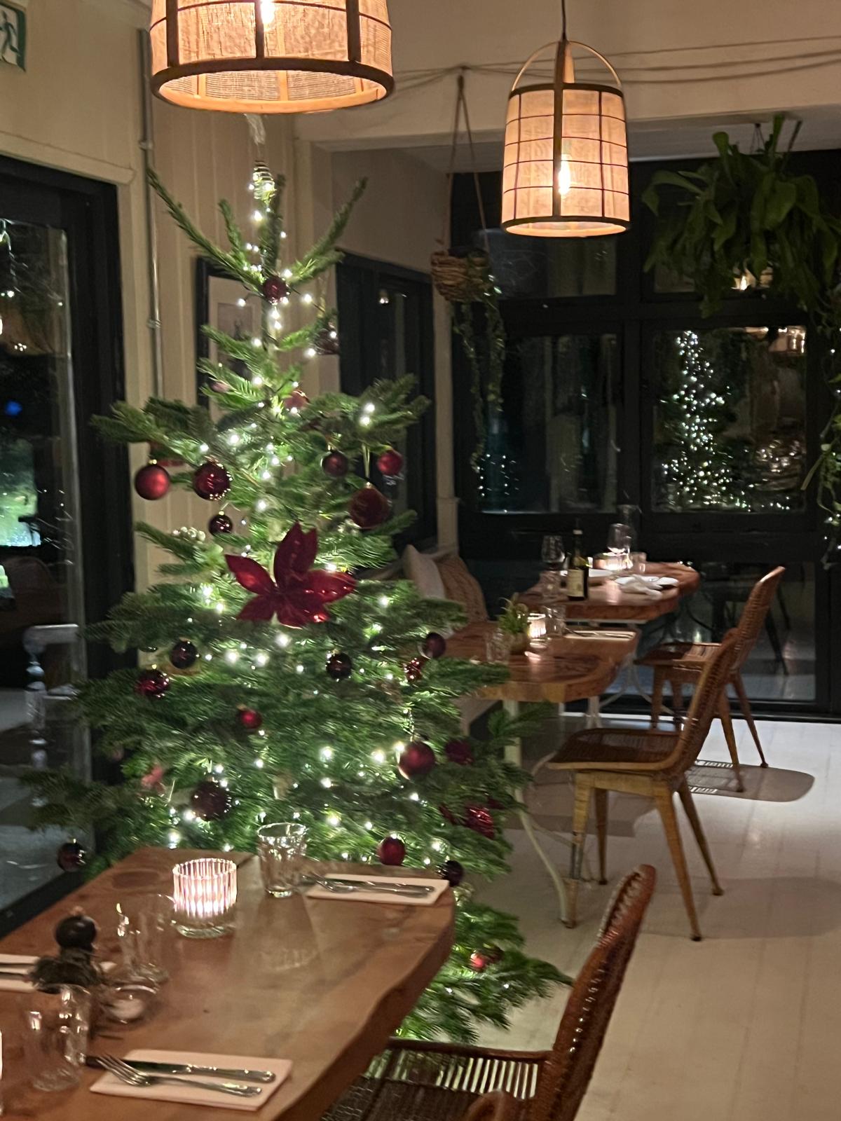 My sub conscious is telling me about the days I used to row but also there is the feel of a ski lodge as well, and when we enter the vibe is very authentic cool with a New England lodge feel, open bar, big sofas and then around to the beautiful, and chic and relaxed dining area.